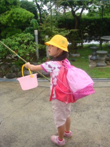 *ちなみに釣竿は日曜日にパパと竹を取りに行き作りました。