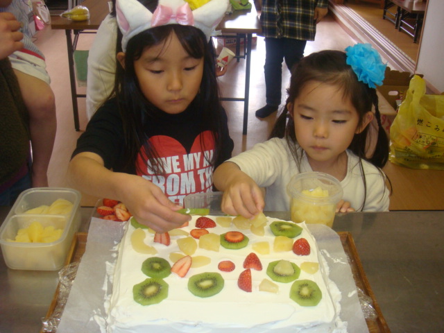 ケーキもスポンジだけお店に注文して、クリームは自分たちで。