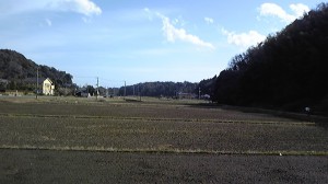 田んぼが続く田舎道は、冬はとっても淋しいんです。