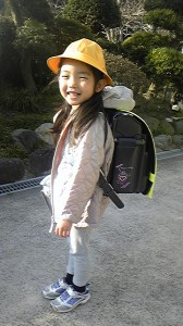 真新しいランドセルは早生まれの次女にはとても大きく見えますが、