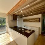 無垢の一枚板のカウンターを生かしたカウンターキッチン。