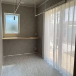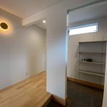 ウォークインの足元に窓を設置し、明かりが取り込める設計となっております。間仕切りで稽古部屋を設けており、仕事場も兼ねたお家になります。