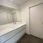 調湿消臭効果の機能高いエコカラットをリビング・寝室・洗面壁に貼り快適な空間を作りました。