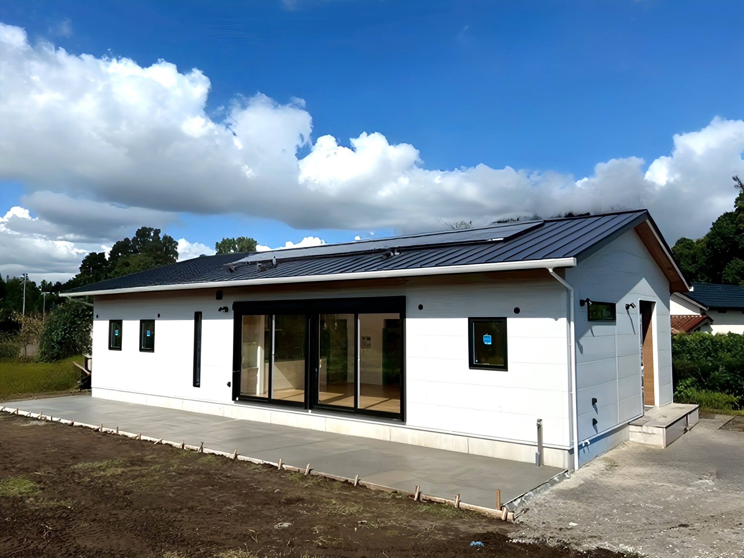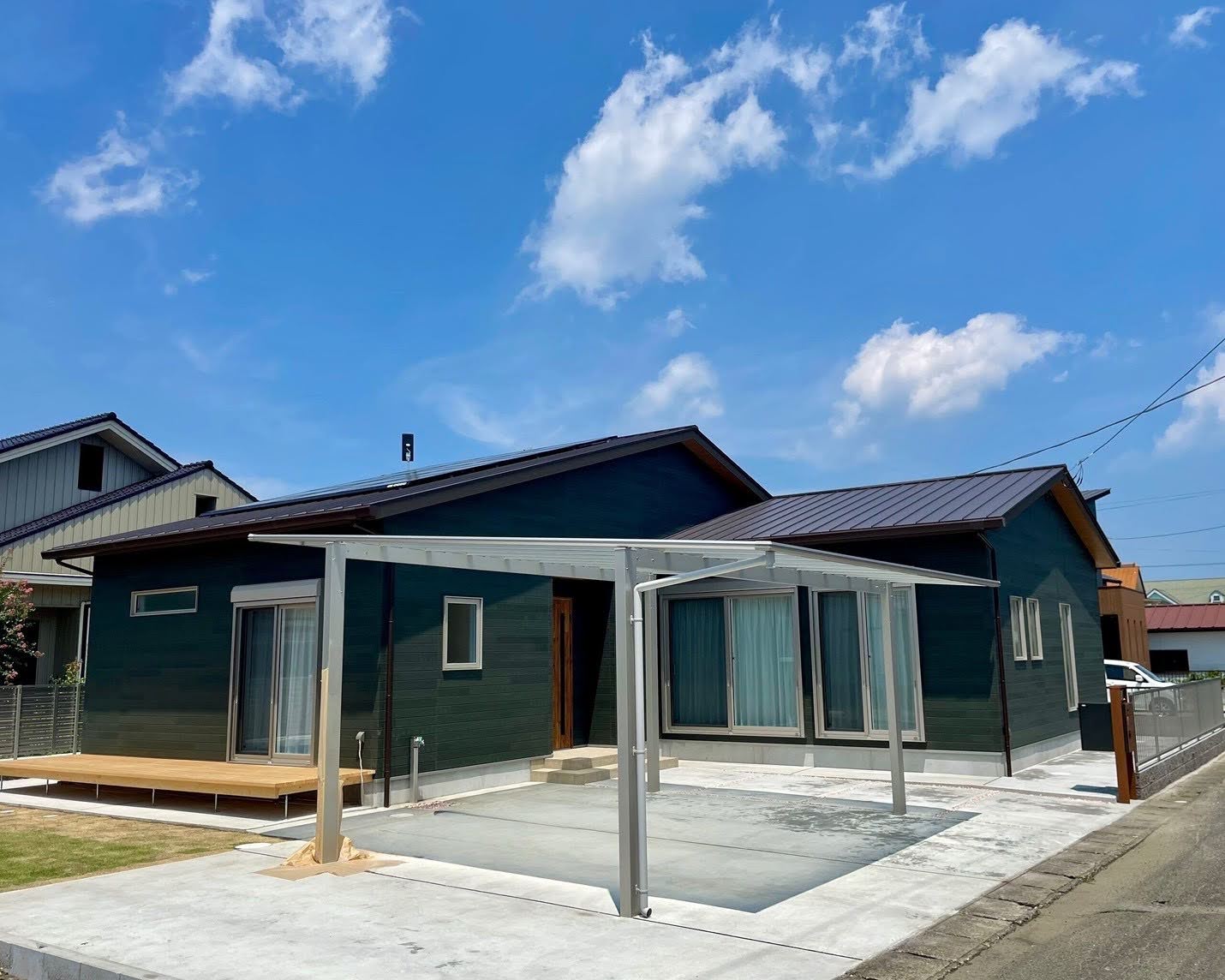 センターリビングの間取りで、家事を一番に考えた動線+各所に配置した収納力で子育て支援の平屋です。太陽光パネルを搭載し、zeroエネルギーを実現しました。少ないエネルギーでお部屋の中は快適に過ごしていただけます。