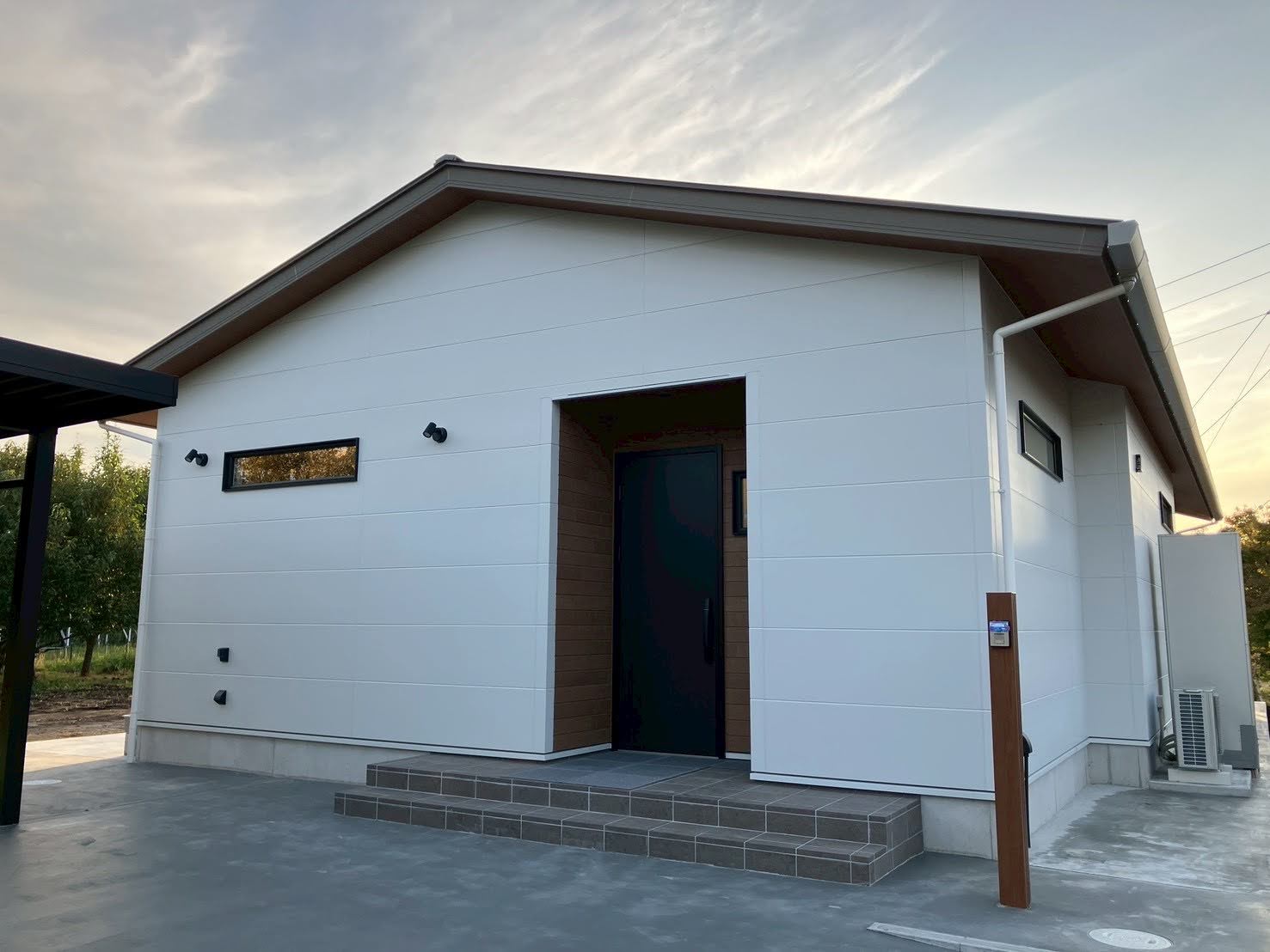 やわらかな光が差し込む、ピュアホワイトの明るい外観の平屋。