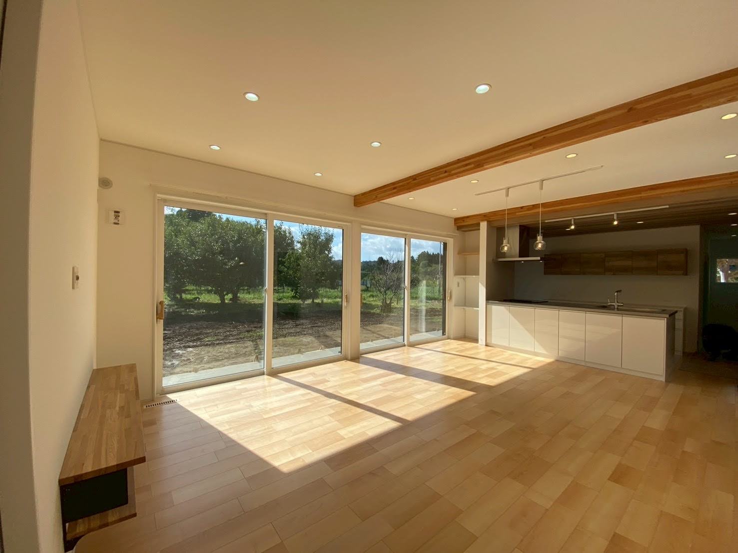 高断熱仕様の大きな窓からはたっぷりと光が入り、明るさと快適性を両立しています。