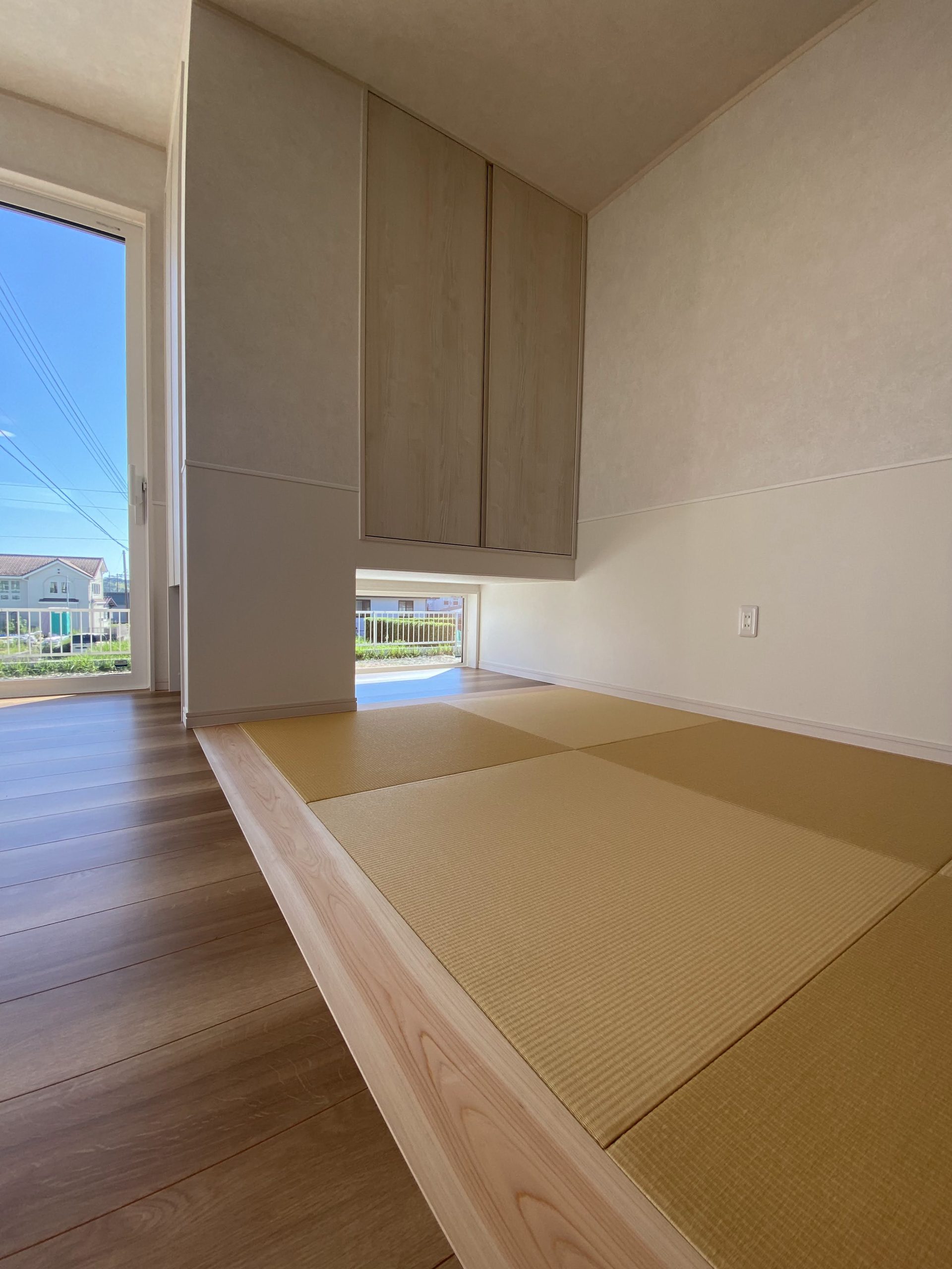 屋根裏には旦那様の趣味室を設けて、一階畳コーナーの畳は耐久性が高くお手入れがしやすい和紙畳を使用しました。
