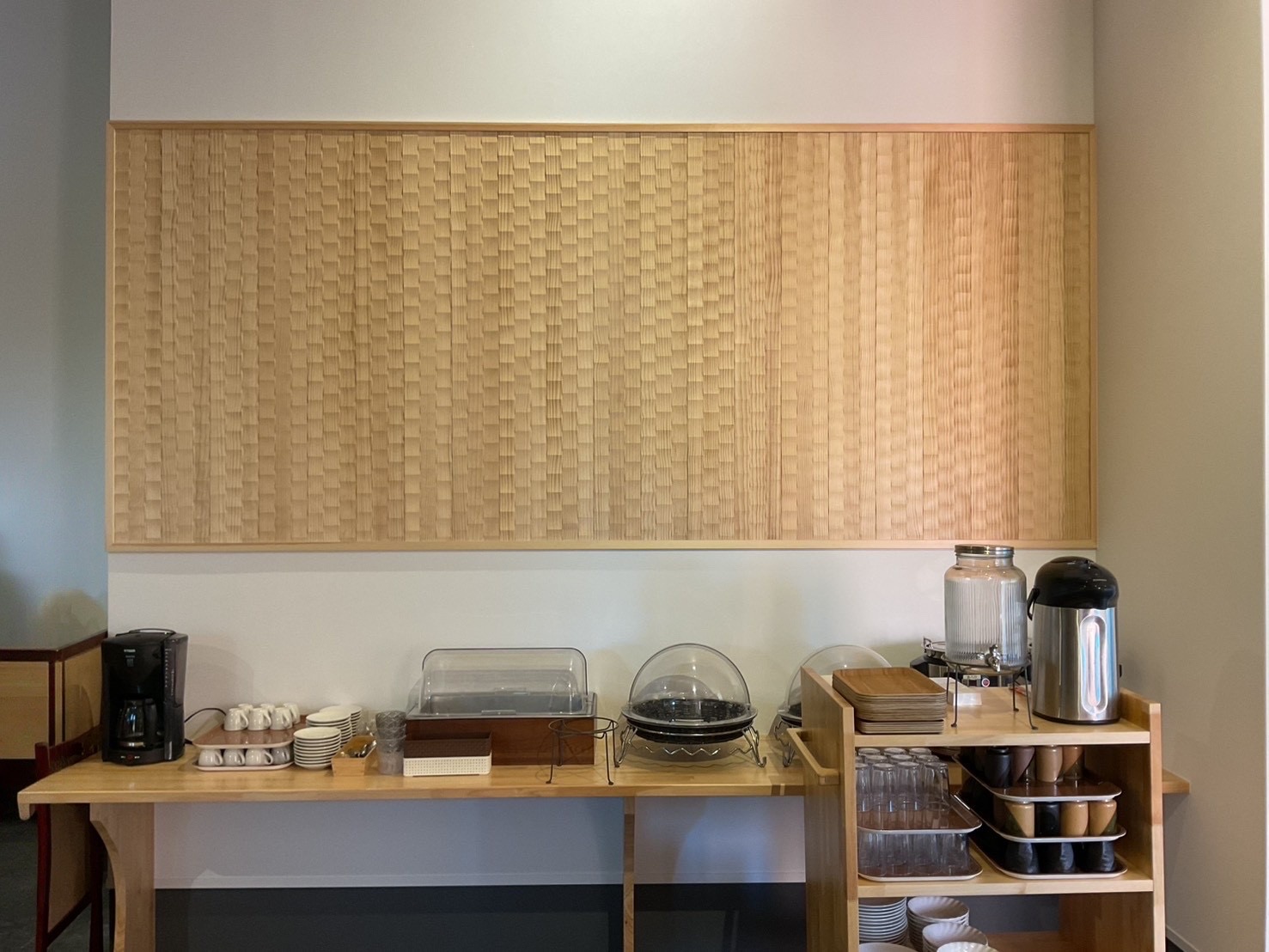 開放感あふれるイートインスペースと、間接照明のぬくもりで落ち着いた店内に。